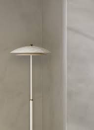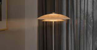 The FASE floor lamp is characterized by suspending two plates through a metal tube that tapers as it goes up in height. The light emitted by an LED module escapes from the top through the transparency of the onyx and reflects on the lower brass disc, creating a warm atmosphere through the soft light emitted by this luminaire. Inspired by the observation and exploration of lunar geometry.