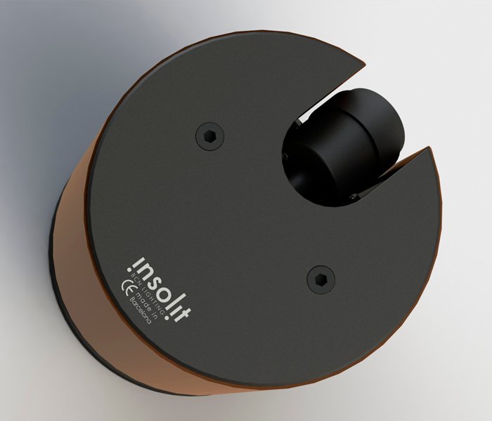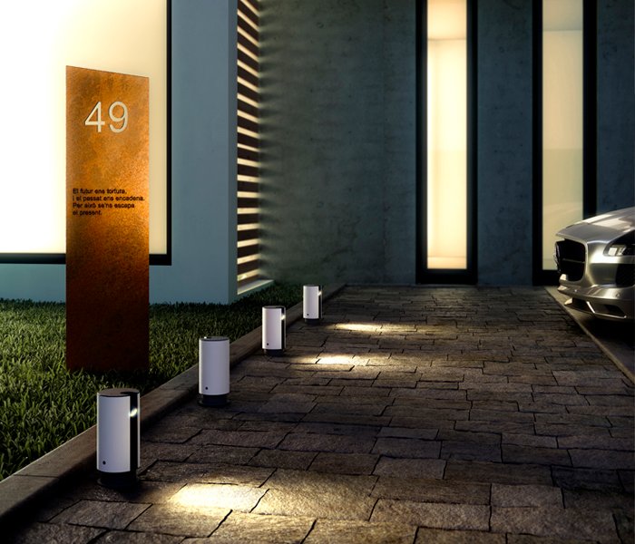 Outdoor design adjustable bollard luminaire (IP65) with accent lighting in extruded and machined aluminium. Machined aluminium microprojector with 135º vertical rotation.