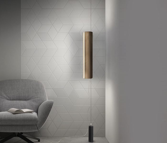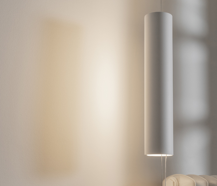 Tensor design lamp with floor weight to achieve a general indirect ambient light. This product is equipped with a footoperated dimmer switch to control the light intensity. The side lighting effect against the wall is ideal for creating a subtle, warm, and pleasant ambiance that will turn any space into a unique and exclusive environment. Made from lasercut extruded aluminum profile with a 120mm diameter. Polycarbonate gel diffuser. LED on a PCB designed by Insolit. Height adjustable with a 5-meter steel cable.