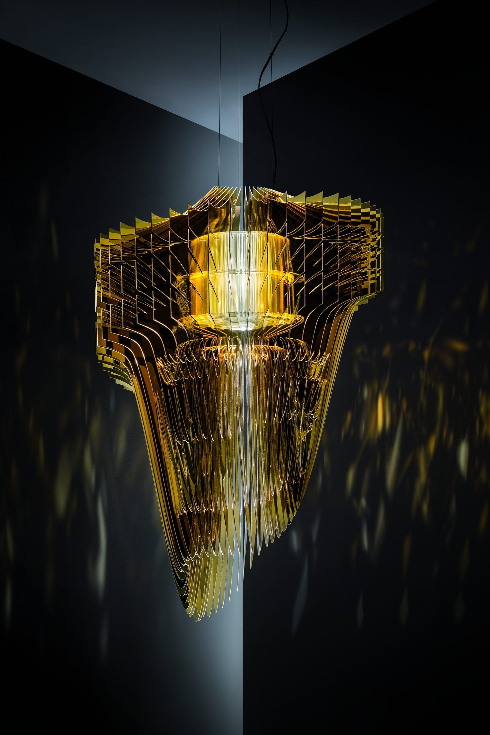 Zaha Hadid’s luminous architecture is visionary, fluid and dynamic, infusing the revolutionary and iconic semantics of the celebrated architect into domestic and public interiors; the result is the harmonization of beings and their surrounding spaces. Hadid’s masterpieces consist of 50 “arms”, each diverse from the others, radiating around a voluminous light source.