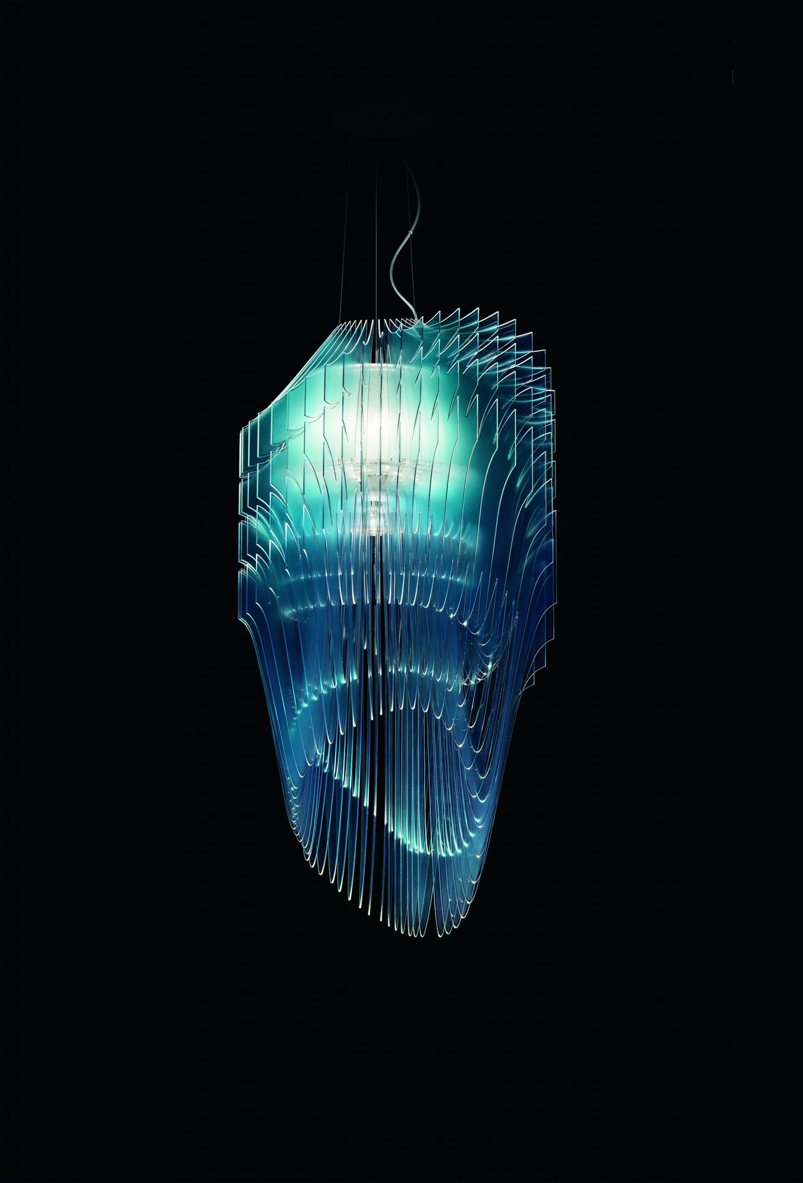 Zaha Hadid’s visionary, fluid, and dynamic luminous architectural objects bring the designer’s revolutionary and iconic semantics to any domestic or public space, inspiring harmony between beings and atmospheres. Avia brings the grandeur of large-scale buildings to a quotidian lamp, integrating technical, voluminous forms with innovative lighting technology. Fifty diverse, Cristalflex® layers surround the central light source in perfect construction, transforming light into sculpture.