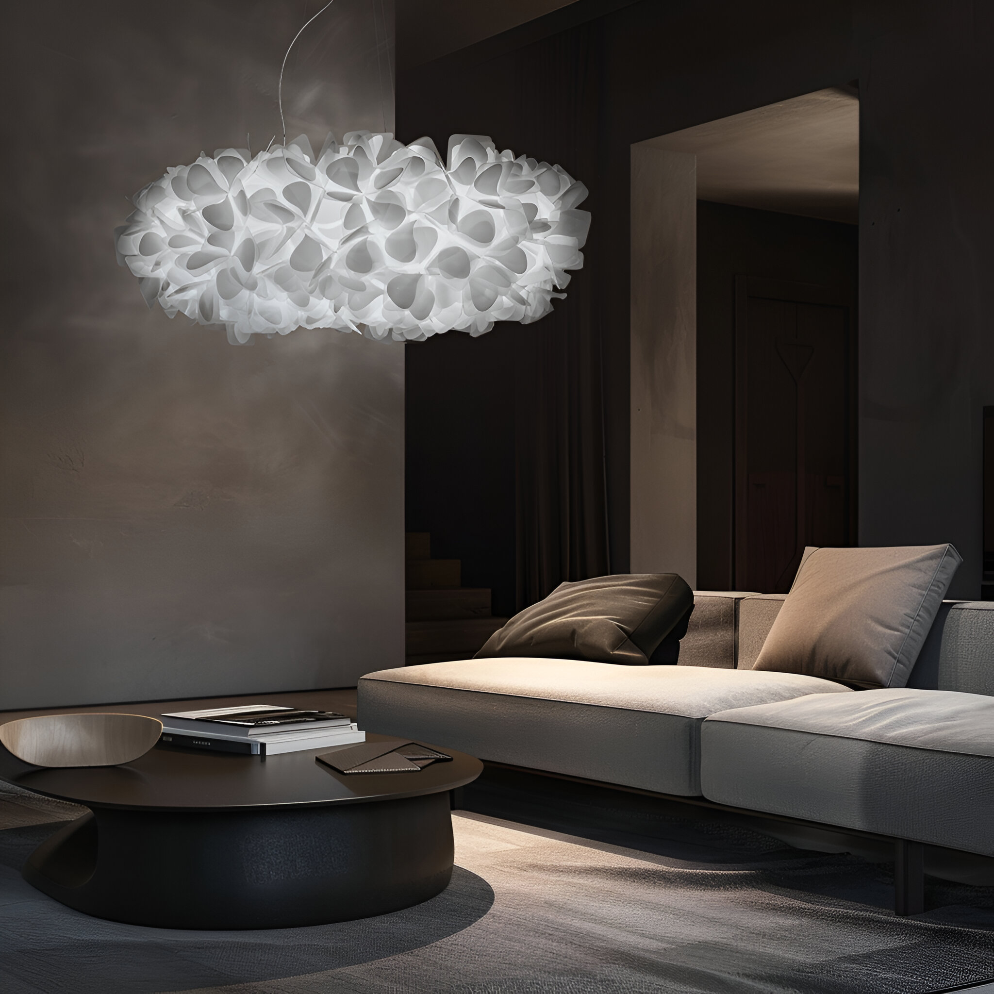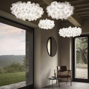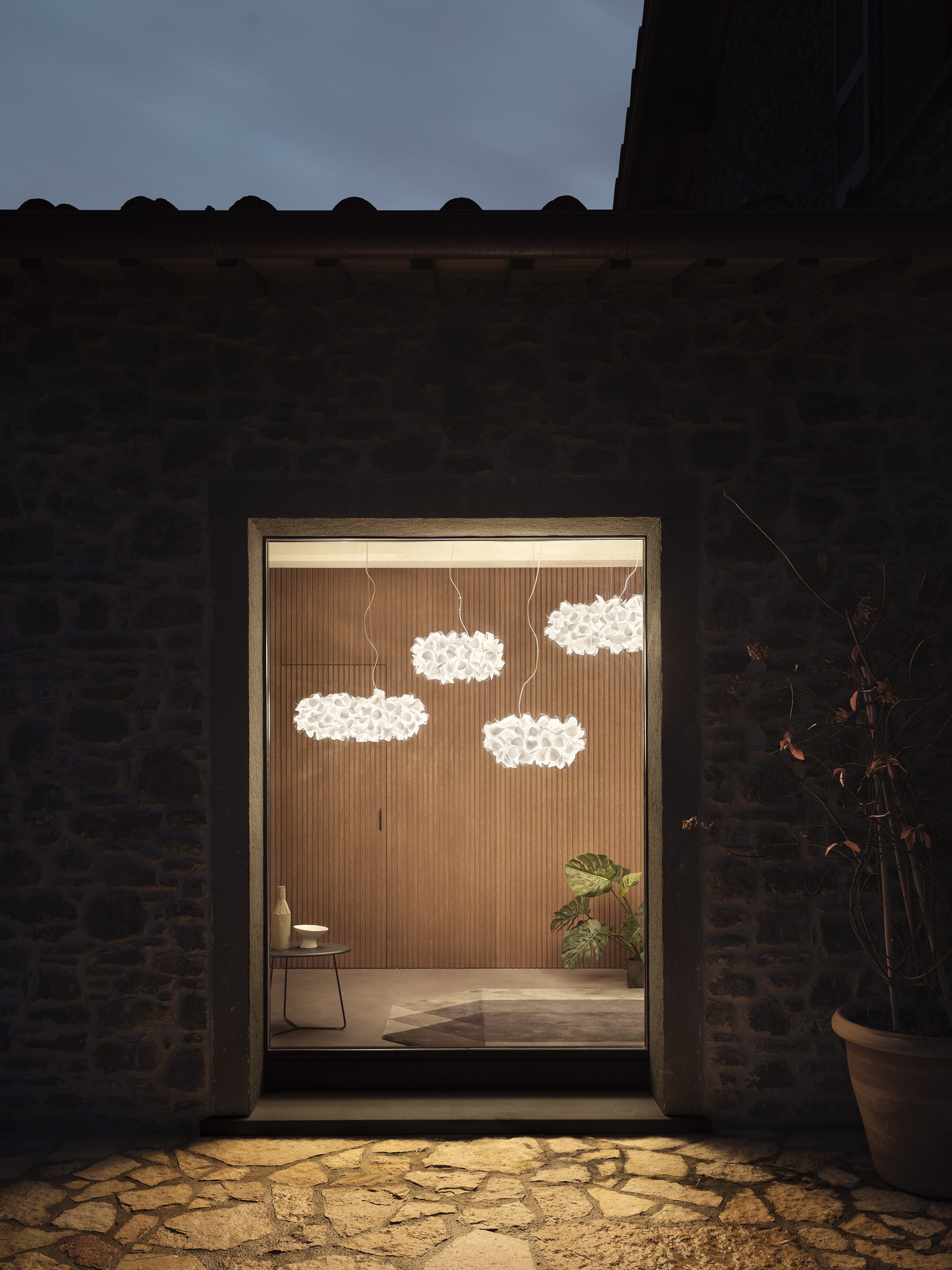 Hand-folded through an interlocking system, Clizia is an ode to joy, femininity, primal love, and the purity of feelings. For its 10th anniversary, the delicate Mama Non Mama version in white is adorned with a precious gold and a trendy black. The gold finish is the result of incessant research of how to adhere double-sided gold leaf through cold application to Slamp’s tecnopolymers. The crackle texture makes each petal more resistant, casting plays of light and shadow throughout a space.