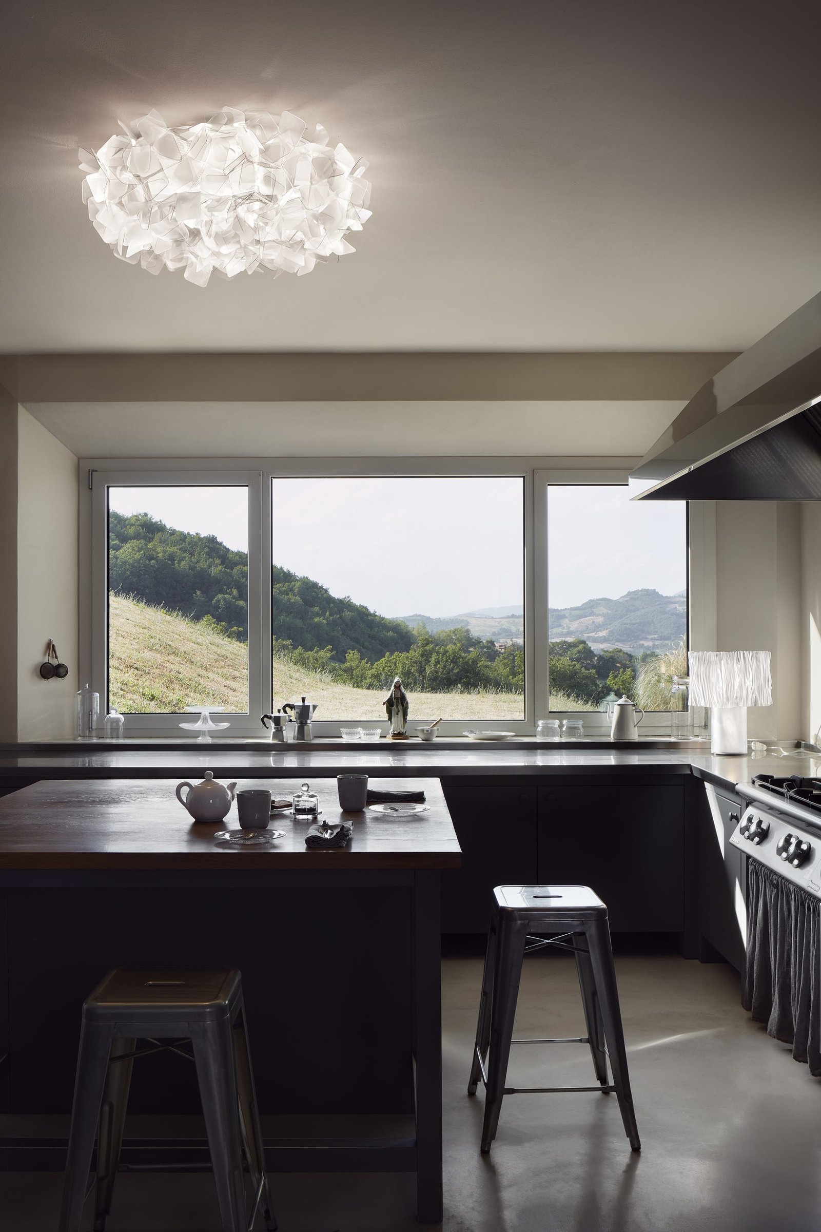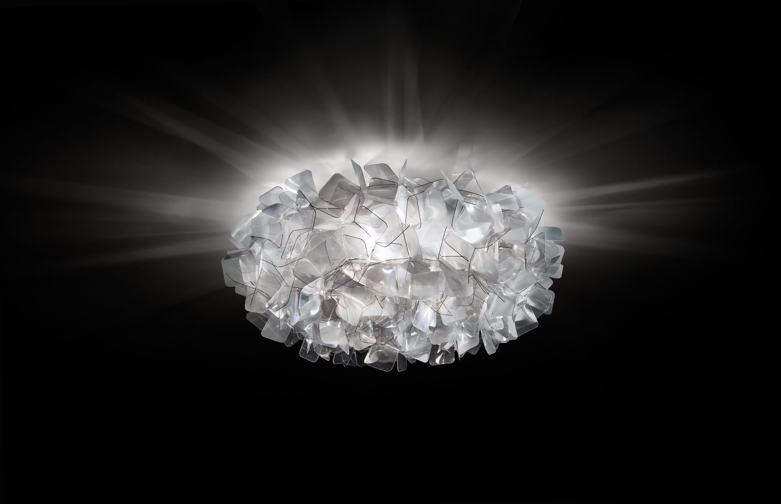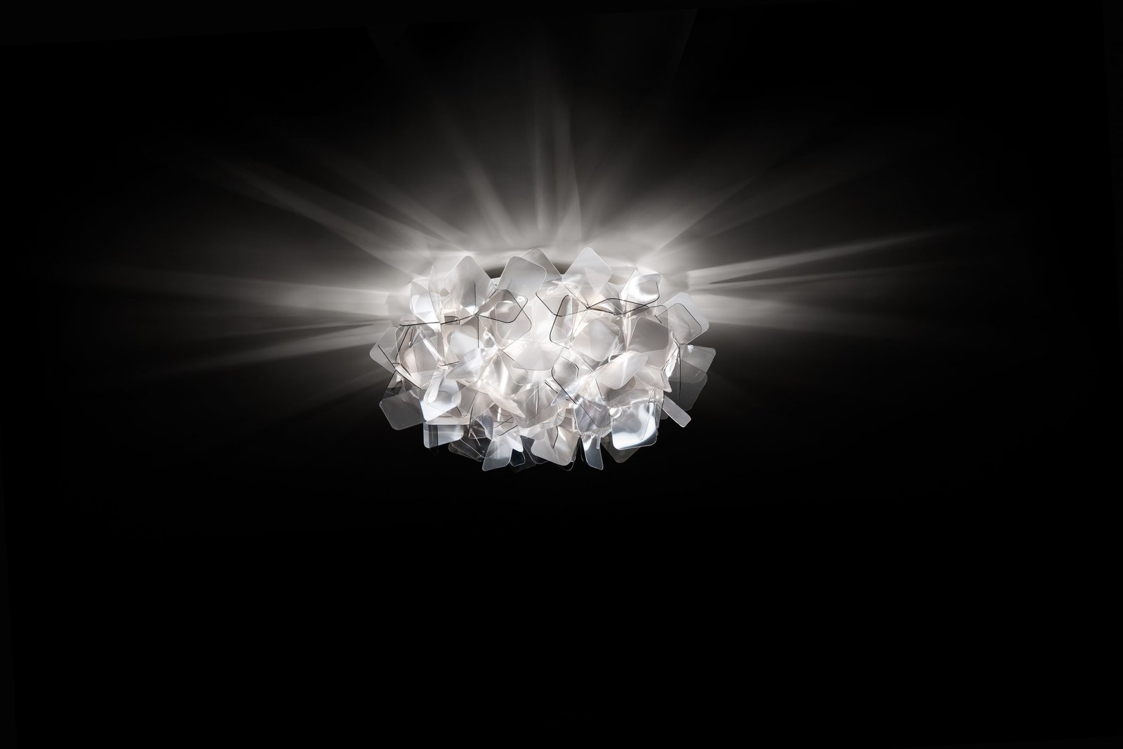 Hand-folded through an interlocking system, Clizia is an ode to joy, femininity, primal love, and the purity of feelings. For its 10th anniversary, the delicate Mama Non Mama version in white is adorned with a precious gold and a trendy black. The gold finish is the result of incessant research of how to adhere double-sided gold leaf through cold application to Slamp’s tecnopolymers. The crackle texture makes each petal more resistant, casting plays of light and shadow throughout a space.
