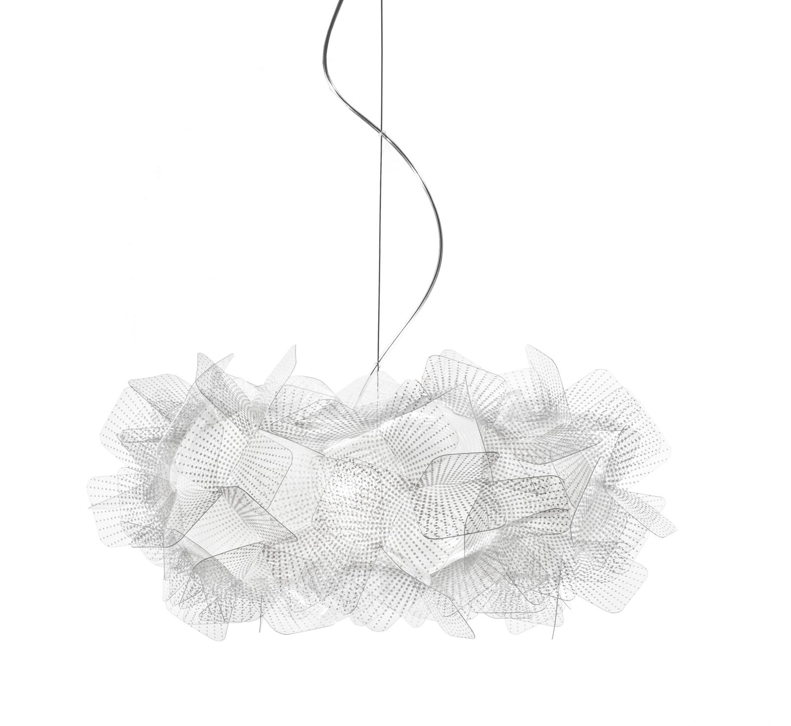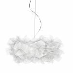 Hand-folded through an interlocking system, Clizia is an ode to joy, femininity, primal love, and the purity of feelings. For its 10th anniversary, the delicate Mama Non Mama version in white is adorned with a precious gold and a trendy black. The gold finish is the result of incessant research of how to adhere double-sided gold leaf through cold application to Slamp’s tecnopolymers. The crackle texture makes each petal more resistant, casting plays of light and shadow throughout a space.