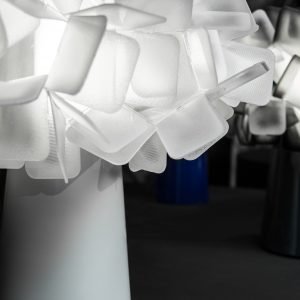 Clizia is a series of shapes fit together to create a perfect balance of reflections and transparencies. The lamp has taken note of natural forms, resembling a cloud that captures the first changing rays of morning sun, or a treetop filtering a play of light and shadows. All of the available versions marry aesthetics with functionality, featuring a magnetic system, connecting them to the ceiling (for the suspensions and applique) or the metal base (for the table and floor lamps). Clizia transforms a space into a landscape without overwhelming it.