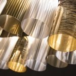 La Lollo is a tribute to the roaring 50’sand their retro charm. A series of unbreakable and lightweight technopolymer cylinders are disposed on a LED integrated central ring. Opulent and dramatic, the suspension’s colour and size can be customized by request to fit large scale installations.