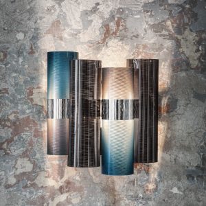 Inspired by the marvelous 1950s, the La Lollo Wall Lamp is a wall-mounted lamp crafted in sophisticated gradient finishes, metallizations, and textile-inspired textures – designed to decorate interiors with the same versatility as jewelry adorns a woman’s body. Made with Slamp’s unique and exclusive technopolymers, the light source accommodates 2 E14 bulbs.