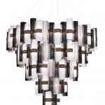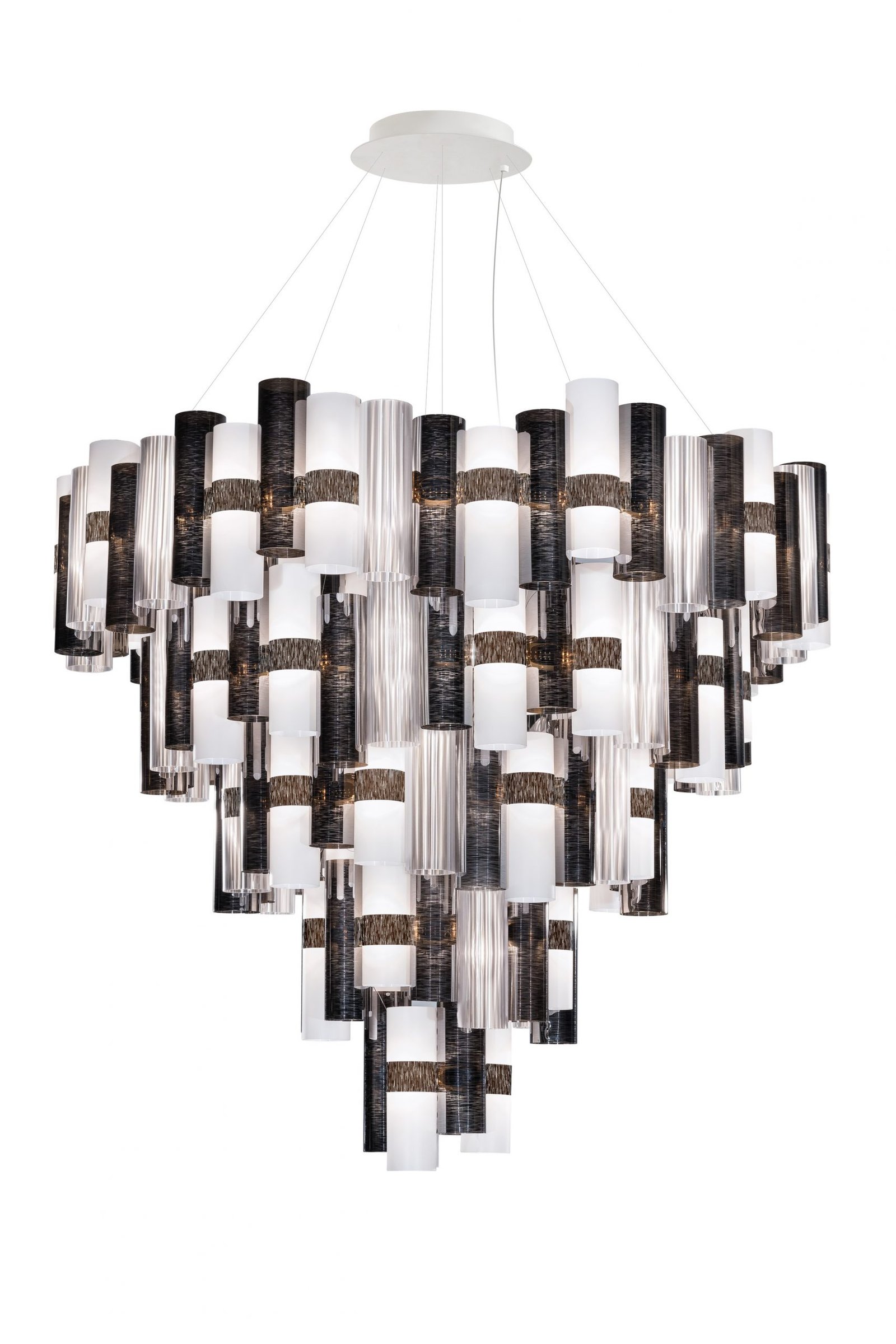 The La Lollona is a tribute to the roaring 50’sand their retro charm. A series of unbreakable and lightweight technopolymer cylinders are disposed on a LED integrated central ring. The La Lollona5 has a diameter of 130 cm, with 132 cylinders. It is delivered in a super-flat packaging weighing only 30 kg! Easy to install, opulent and dramatic, the La Lollona colour and size can be customized by request to fit large scale installations.