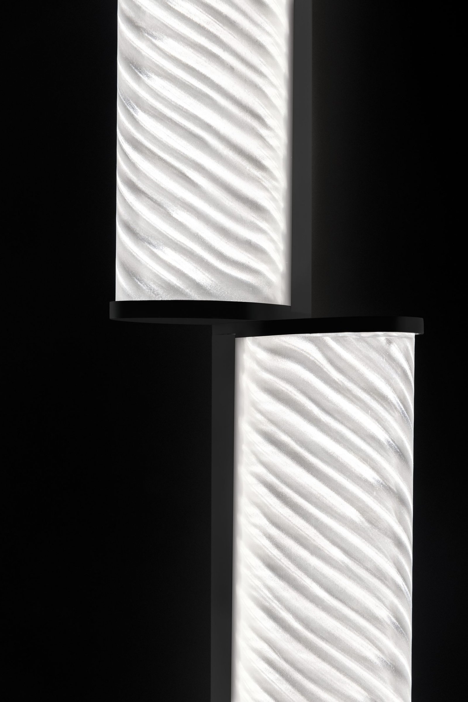 Modula is a versatile collection that creates unexpected plays of light. Columns from Medieval cloisters inspired a Plissé effect, and sparkling stones are reflected in a Crystal effect, each taking a lamp that is outwardly minimal to an explosion of creativity, where even, linear light liquifies throughout.